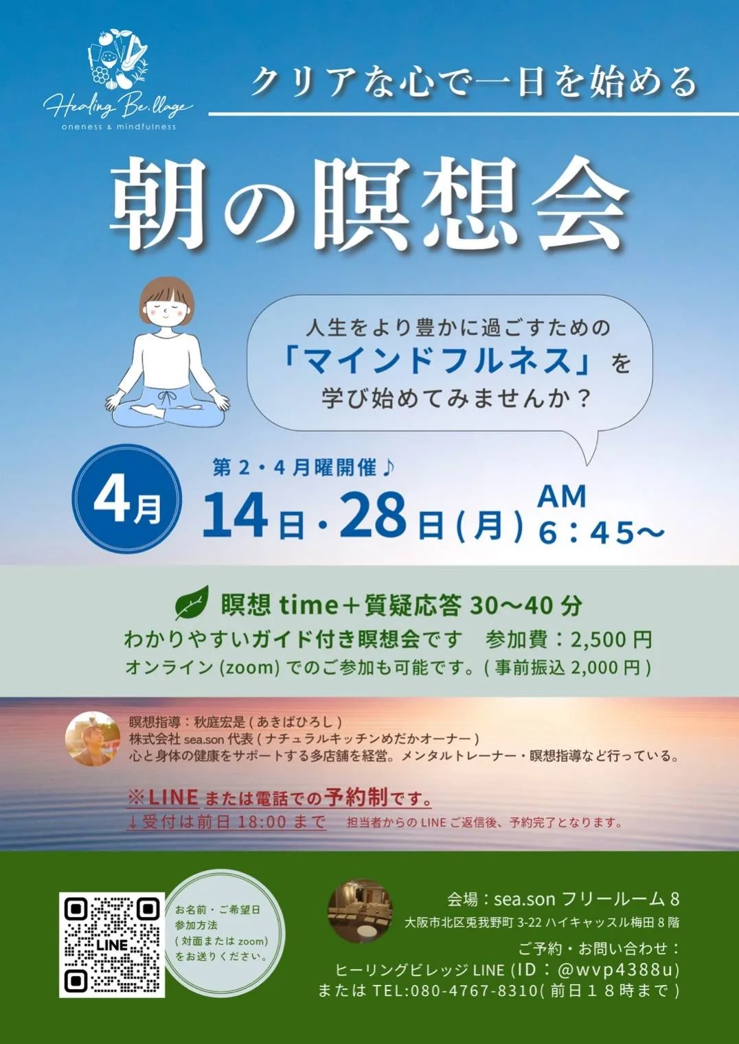ココロをリセットし、週の始まりをスッキリ穏やかな気持ちでスタートする朝瞑想の習慣をはじめませんか?